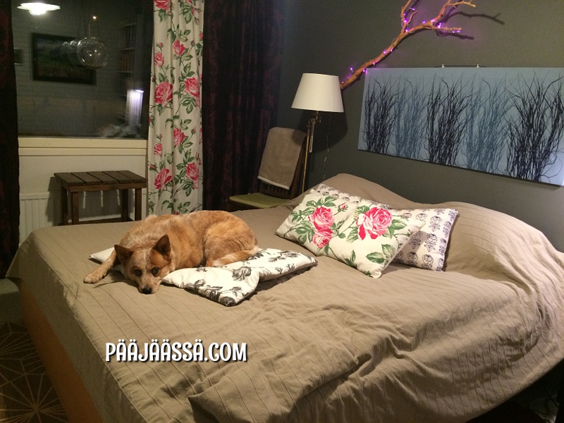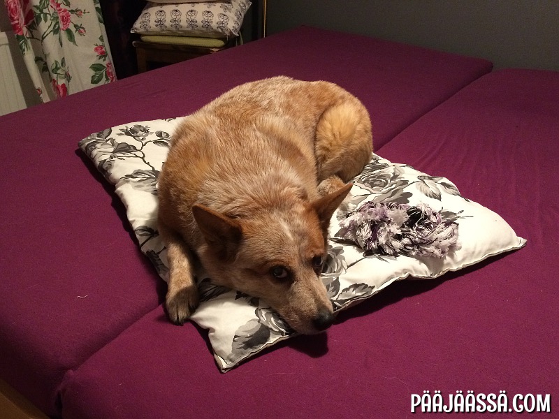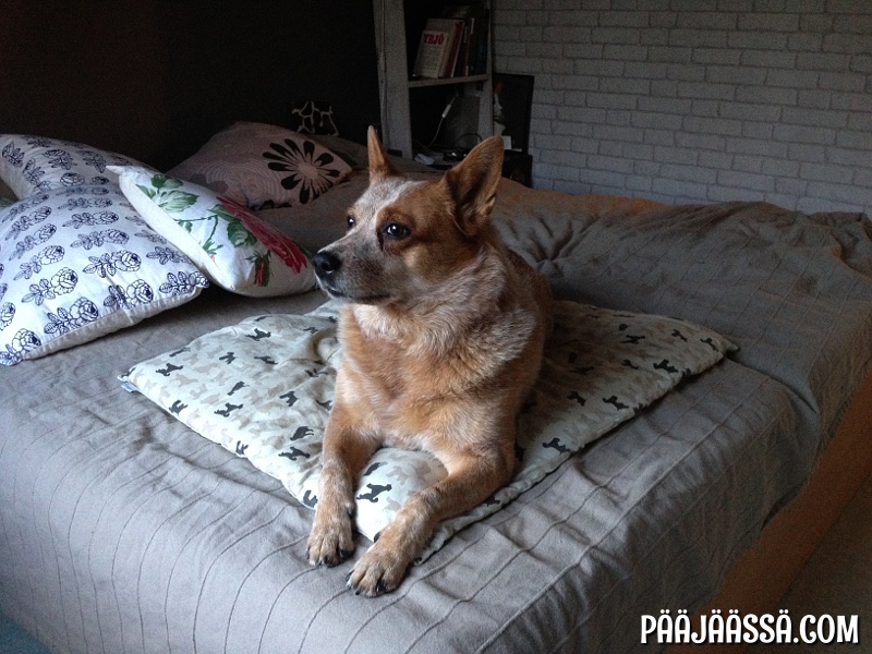 Hauveli kyllä tykkää! Muuta pitäisi tehdäkään hänen kanssaan kun käydä sängyllä leikkimässä ja loikoilemassa 🙂 Siellä lauman on hyvä olla koossa!