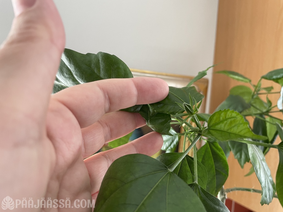 Olen tarkkaillut tämän lehtiä ostopäivästä lähtien miltei päivittäin. En huomannut ötököitä, vaikka olihan siihen päässyt pari ripsiäistä jostain toisesta kasvista kömpimään. En käytä ripsiäisiin mitään ihmemyrkkyjä vaan yritän ”poistaa” ne käsin. Tietysti joissain kasveissa auttaisi myös viedä ne suihkuun.