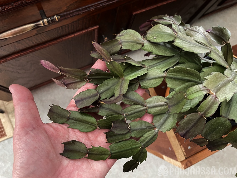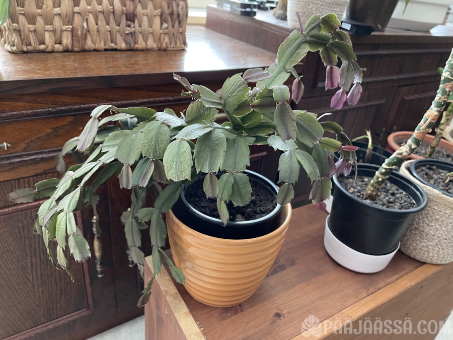 Marraskaktus on päässyt myös huonekasvien taivaaseen. En kerta kaikkiaan tajua mitenkä en saanut tätä niin helppoa kasvia pidettyä hengissä. Se ei vaan viihtynyt. Nyt on monessakin kasvissa alkanut tapahtua kummallista nuutumista. Pitää kokeilla paria kikkaa, jos ne auttaisivat asiassa. Ensinnäkin, huonekasvien kasteluvesi pitää keittää! Nykyinen kraanavesi ei edes maistu kovinkaan hyvältä niin tuskinpa se on kasveillekaan hyväksi. Siinähän on kloramiinia mikä tappaa bakteereita… tappaa myös varmaan hyödyllisetkin bakteerit mitä vaikkapa mullassa kuuluu olla. Kloramiini ei haihdu vedestä pois seisottamalla kuten kloori haihtuu!