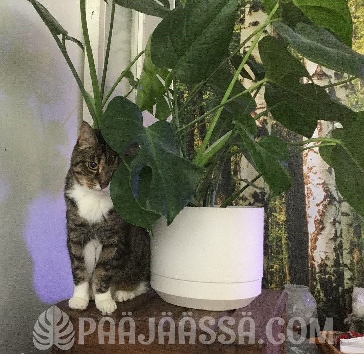 Siirsin loppukesästä kasvihyllykön ikkunan ääreen, jotta kasvit saisivat mahdollisimman paljon luonnonvaloa. Homma on vielä totaalisen kesken. Minulla kun on ollut tässä kissahoidokkeja pitkin alkusyksyä, joiden vuoksi olen tehnyt erikoisia järjestelyjä. Viimeisimmät kissavieraat eivät olleet onneksi kiinnostuneita huonekasveistani toisin kuin edelliset. Kerron näistä ihanista vieraista toisessa postauksessa.