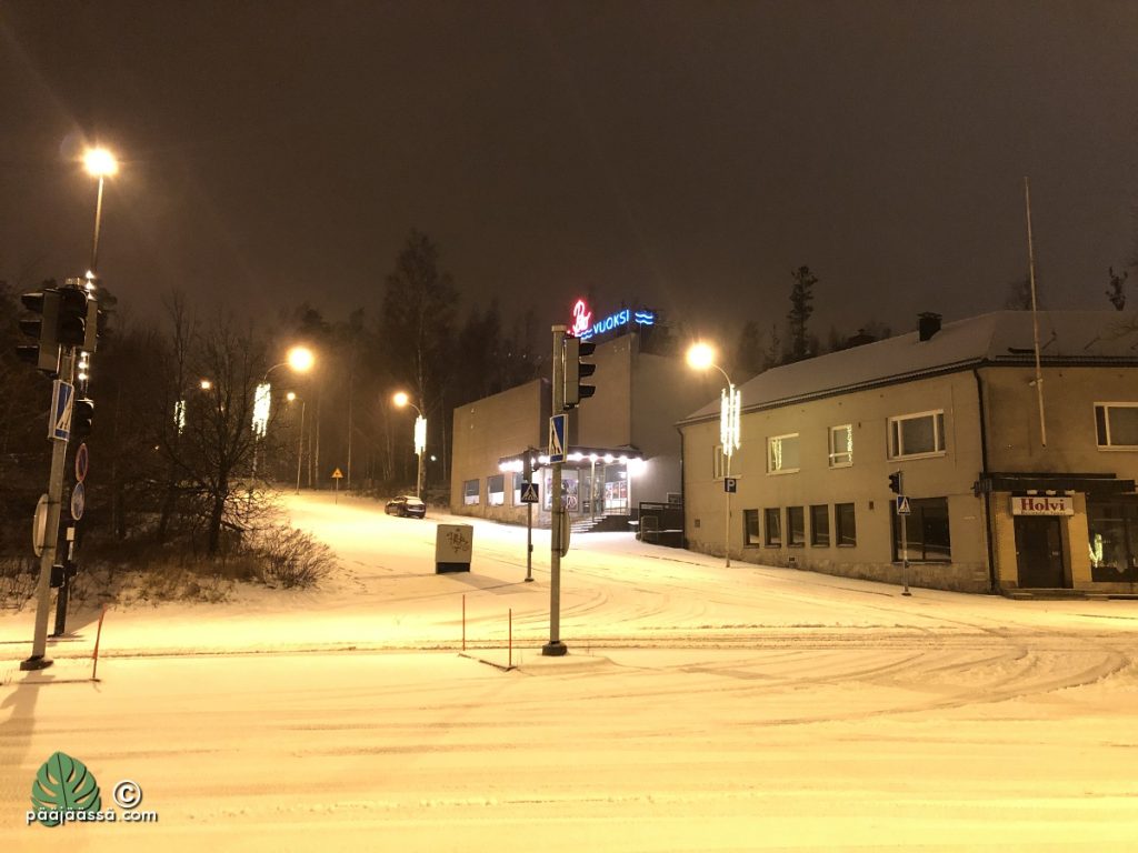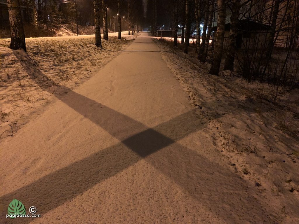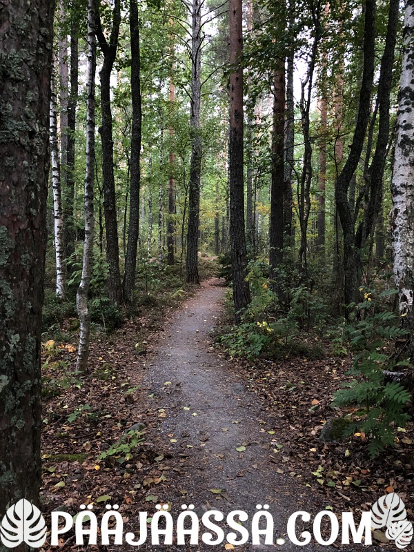 Täällä Vuoksenniskalla on erityisesti todella paljon sellaisia kulkureittejä, missä luonto on lähellä. Kuvasta kun katsoo oikealle yläviistoon, metsässä kulkee valaistu pururata, jonka varrella on myös frisbeegolf-rata. En ole käynyt heittämässä sillä radalla vielä kertaakaan. Pitää kokeilla joku kerta, jos vaikka pystyisikin kävelemään edes puolet radasta.