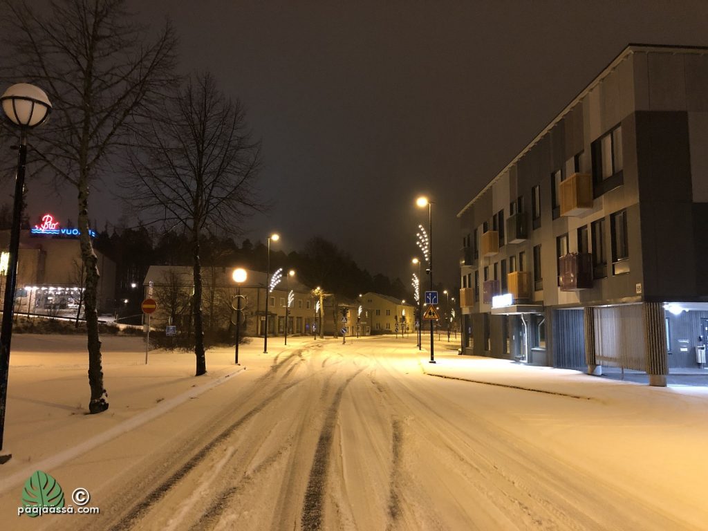 Meillä liikenne ja maisemat ovat hieman erilaisempia kuin mitä esimerkiksi Helsingissä on… ei ole liikennettä eikä ruuhkaa kevyenliikenteen väylillä, eikä sen koommin autoteilläkään. Tässä on kuva kotoani muutaman sadan metrin päässä kulkevasta pyörätiestä, jossa kulkee tiettyinä kellonaikoina porukkaa töihin tehtaille. Vietin tälläkin tiepätkällä aikaa tovin, kun välillä pysähtelin ottamaan kuvia, ja myös videota, eikä ketään tullut vastaan. Ei edes koirantaluttajia. Itse kävelin kuitenkin Foxyn kanssa tästä usein.